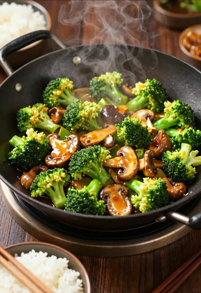 3. Toss in broccoli and mushrooms, stir-frying for about 5-7 minutes until cooked.
