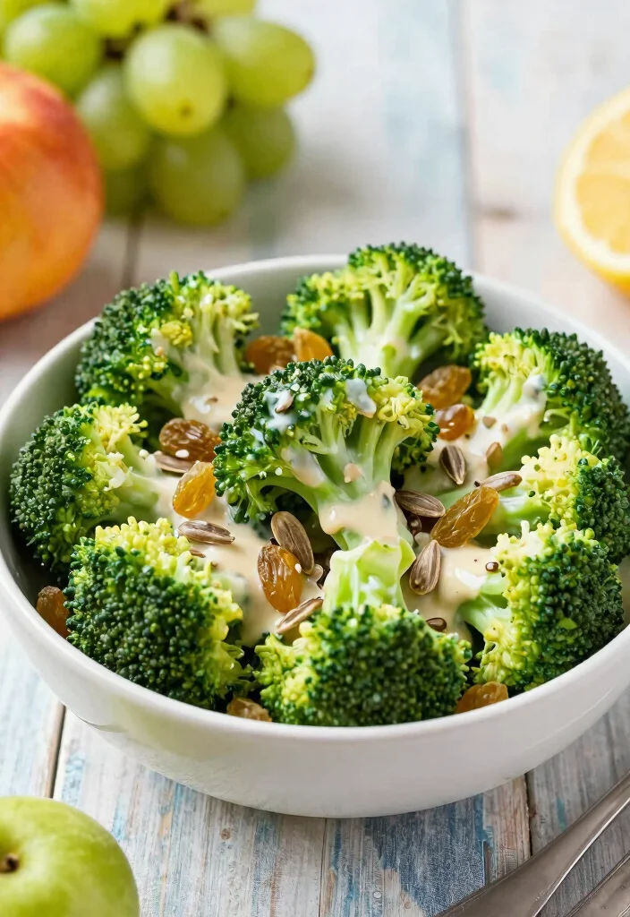 Fun fact: A cold broccoli salad stays crunchy for hours, especially with a light yogurt dressing. Add raisins and sunflower seeds to boost sweetness and texture, turning a simple side into a crave-worthy, kid-approved part of your healthy broccoli side dish recipes.