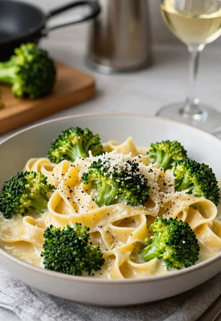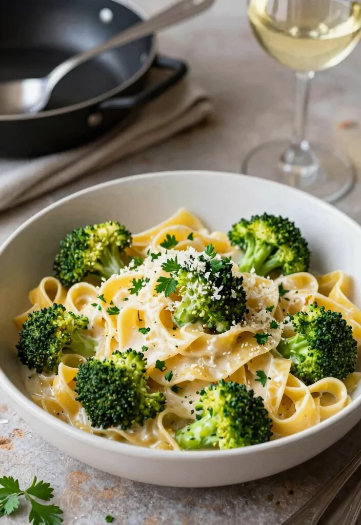 Indulge in the creamy goodness of this One-Pot Garlic Parmesan Broccoli Fettuccine! This dish combines rich flavors of garlic and parmesan with tender broccoli, all in one pot for easy preparation and cleanup.