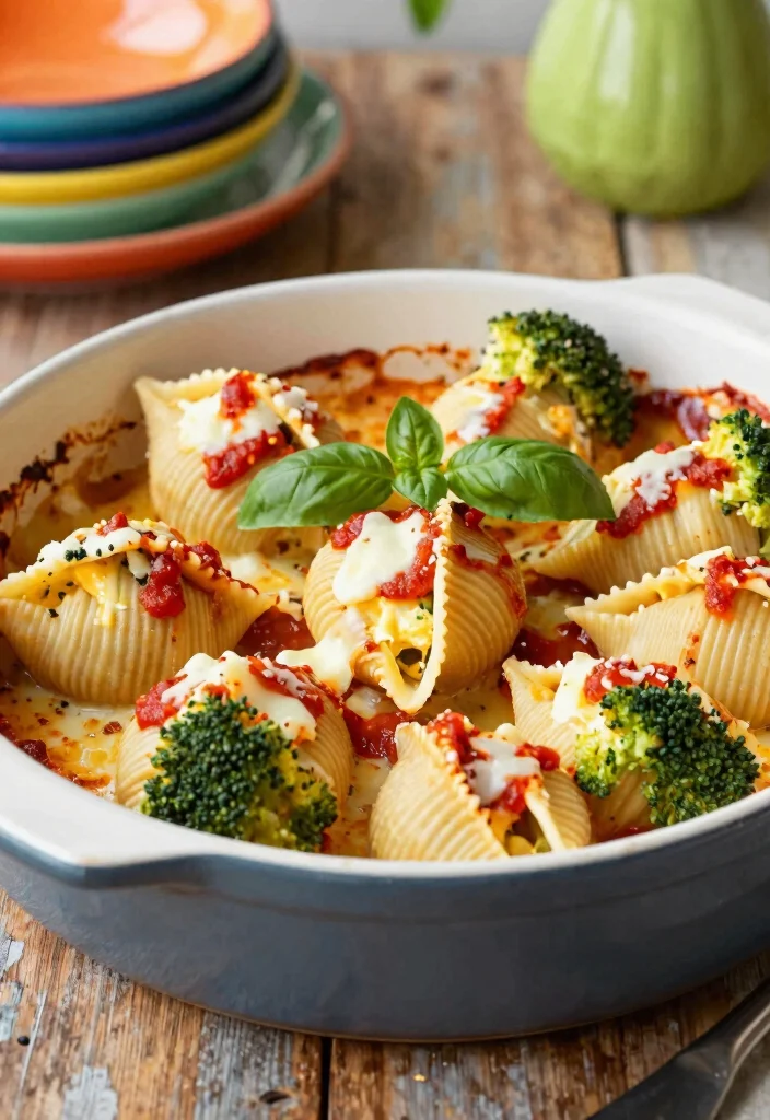 Want to impress your guests? Stuffed shells are a fun and satisfying way to enjoy pasta! These large shells are filled with a creamy mixture of cheese and broccoli, then baked with marinara sauce, creating a beautiful and comforting dish.